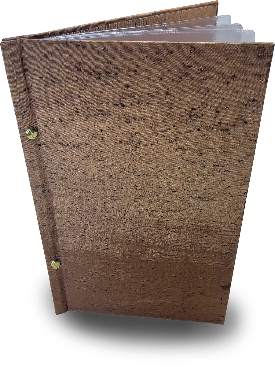 此款碎花皮紋充布紙由中国製造,質感細緻,紋理立體,適合搭配二倍數軟質PVC內頁膠套,展現實用與美觀兼具的設計風格。當然,亦可依需求選擇其他內頁配置,例如:典雅的象牙紙內頁、厚實的頂級卡紙板內頁,或旗艦級的無敵菜單內頁,皆可靈活搭配。