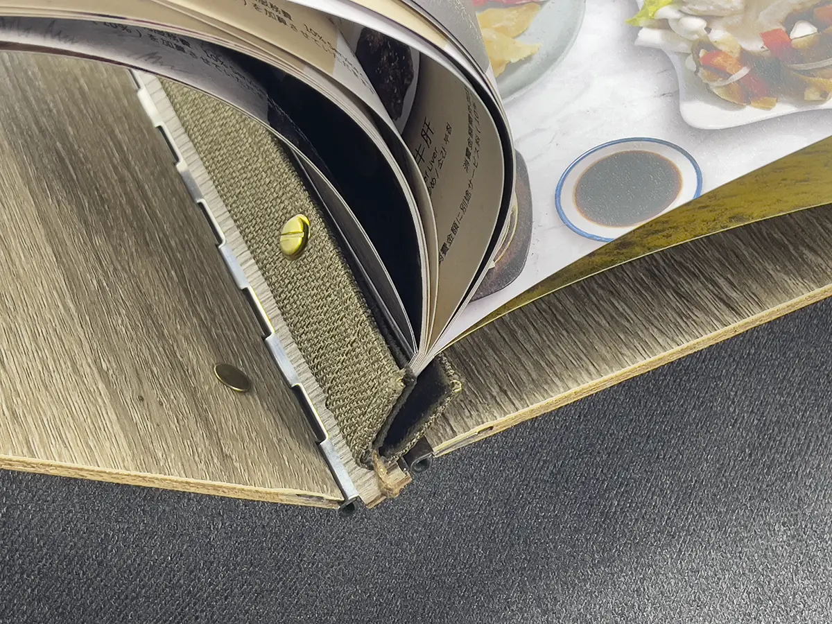 Our custom menus are one-of-a-kind and can be tailored to the buyer’s preferences. For room service menus, we intentionally make them thick and sturdy to prevent them from being taken away, but we can also make them small and thin based on the buyer’s needs. The materials used for the inside and outside of the menu can be mixed and matched to provide a wide range of options. We recommend using a four-hole metal clip for quick and easy replacement of the pages during events.