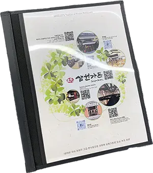 The Invincible Menu offers two options for its cover: the high-gloss hard plastic sheet and the diamond-gloss hard plastic sheet. The high-gloss option enhances the colors of the menu, while the diamond-gloss option features micro-particles on the surface, creating a 3D effect and increasing its durability. The Invincible Menu can be bound with either double or quadruple pages, and the soft and strong properties of the eco-friendly non-woven fabric allow for easy and durable page turning.